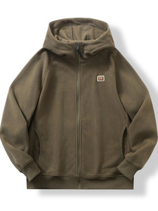 秋冬季男士户外薄绒保暖舒是百搭立领拉链连帽休闲开衫卫衣外套潮