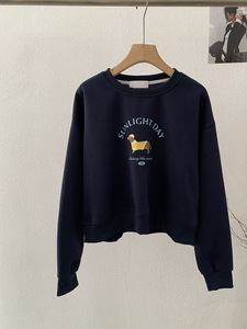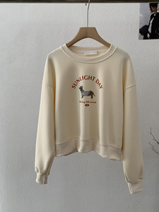 欧玛莱 卡通小狗印花圆领长袖宽松套头卫衣韩系休闲百搭上衣 4846