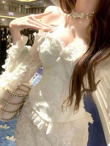 法式甜辣风蕾丝拼接长袖抹胸上衣早秋新款高腰包臀半身裙两件套女