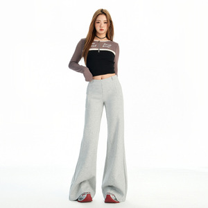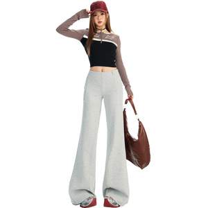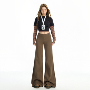 稚橘#黑色高级感微喇休闲裤女中腰宽松显瘦时尚慵懒百搭拖地长裤