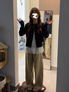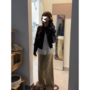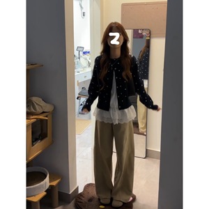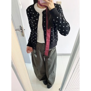 初秋穿搭时尚波点针织开衫女圆领慵懒单排扣外套上衣时髦软糯毛衣