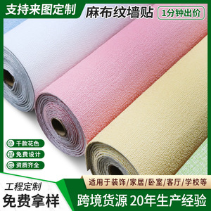 亚麻纹墙贴纸酒店工程背景墙面遮丑装饰壁纸日式自粘纯色麻布墙贴
