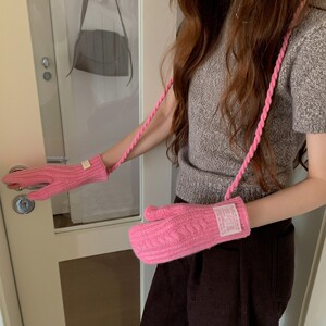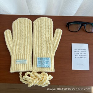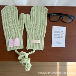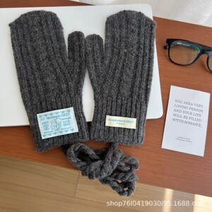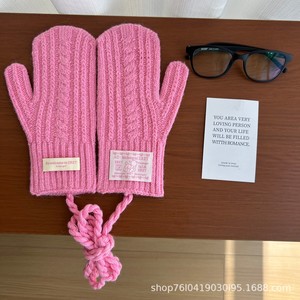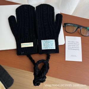 韩代同款麻花毛线手套25新款甜妹冬季骑行保暖挂脖包指手套可触屏