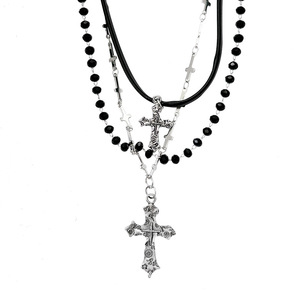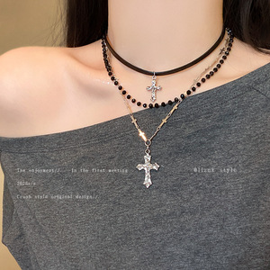 暗黑多层皮绳十字架项链女高级感锁骨链小众高级感叠戴毛衣链配饰