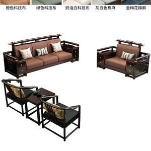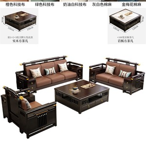 新中式全实木沙发大户型客厅整套家具组合轻奢高端科技布123组合