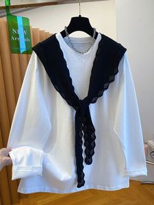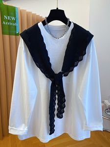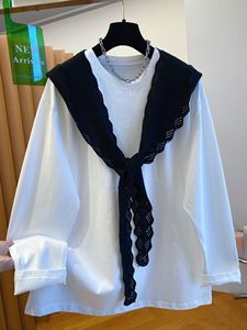 大码240斤披肩长袖t恤女2025新款秋季宽松大版白色体恤打底衫上衣