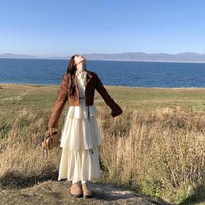 秋日浪漫 尔长袖蛋糕裙短款外套套装气质甜美小众连衣裙外套