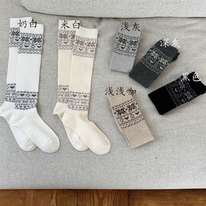 北欧费尔岛风网红复古显瘦堆堆袜羊毛针织时尚保暖微压长筒小腿袜