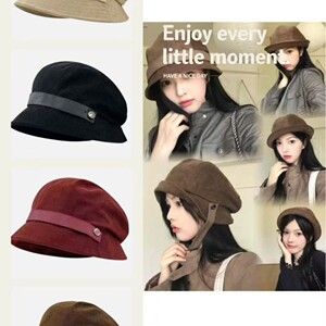 秋冬新款高品质灯芯绒渔夫帽英伦风休闲百搭时尚文艺百搭报童帽