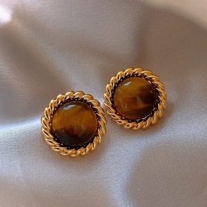 复古美拉德虎眼石耳环轻奢高级感耳钉简约时尚气质个性百搭耳饰