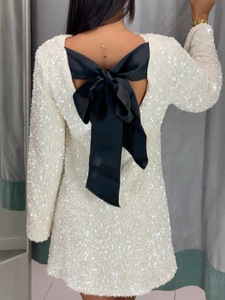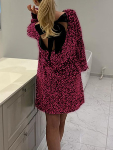 迪芸跨境欧美优雅亮片长袖短裙子连衣裙女装2025秋冬亚马逊独立站