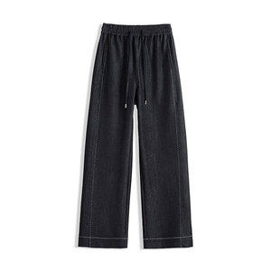 25秋冬休闲撞色明线设计显瘦垂感牛仔裤松紧腰直筒阔腿裤25625