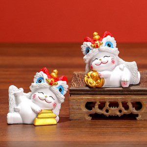 国潮醒狮招财猫玄关家居摆件可爱小猫桌面装饰品乔迁新居开业礼品