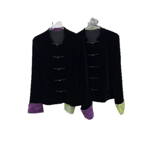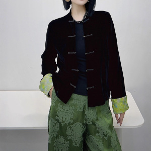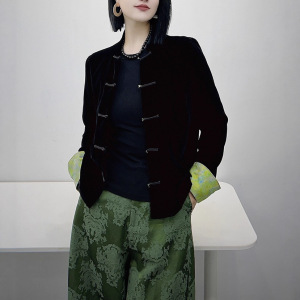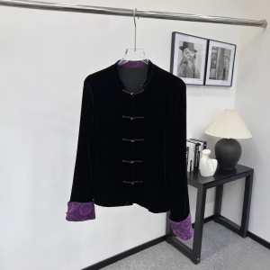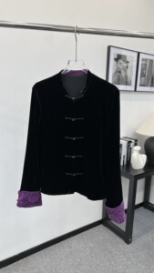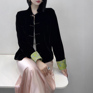 南油代发2025秋款新中式真丝丝绒袖口拼接真丝提花外套上衣不退换
