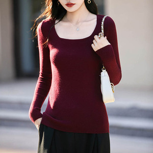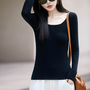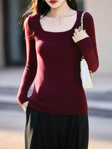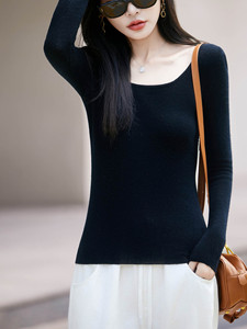 大U领超细精纺羊毛修身显瘦打底衫秋冬薄款简约纯欲风内搭针织衫