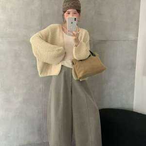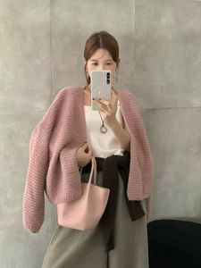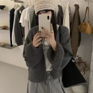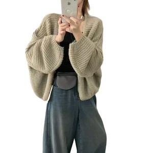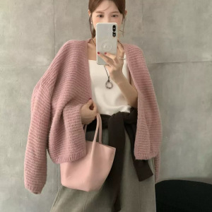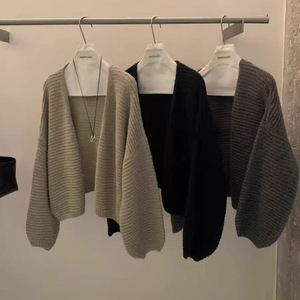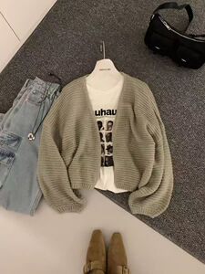 韩版2025年早秋十三行新款纯色灯笼袖针织慵懒风气质开衫外套女