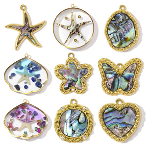 法式爱心蝴蝶鲍鱼贝diy不锈钢吊坠女海星创意渐变项链钛钢饰品
