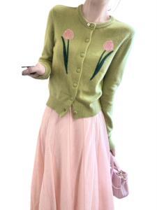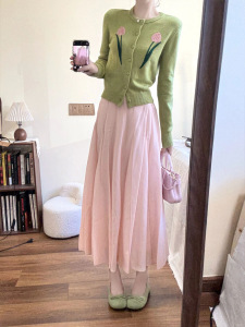早秋穿搭一整套多巴胺气质甜美小个子宽松针织开衫半身裙子两件套