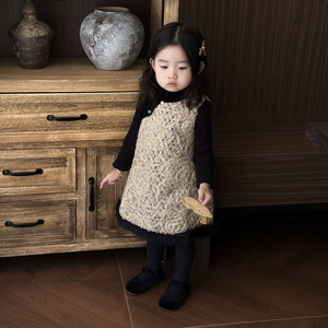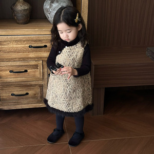 女童汉服旗袍裙2025新款秋冬儿童立领无袖坎肩背心裙宝宝周岁礼服