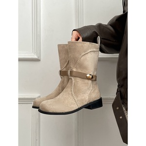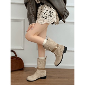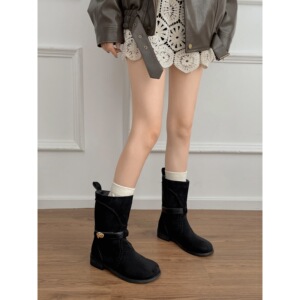女王范复古英伦风厚底靴子女2025新款秋季配裙子显瘦勃肯短靴子