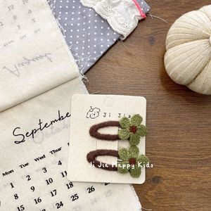 秋冬混色毛线三角发夹可爱手工针织樱桃BB夹儿童刘海夹宝宝发饰