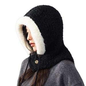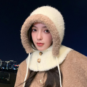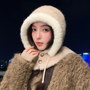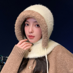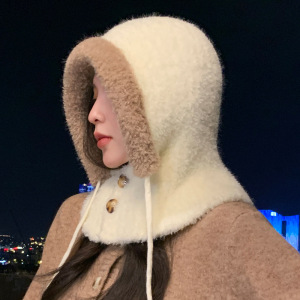 韩系巴拉克拉法帽保暖防风帽子女冬季护耳针织毛线帽显脸小一体帽