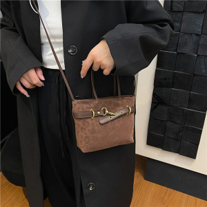 跨境女包秋冬新款复古豹纹手拎包小众设计皮带扣丝绒斜挎包直播包