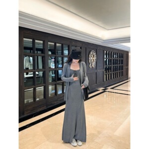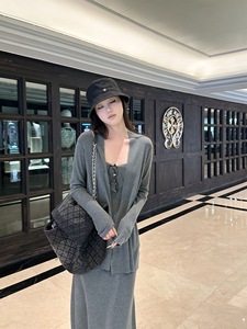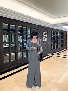 5werkwen 松弛美女 羊毛针织开衫吊带长裙套组