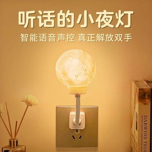 新款智能语音控制月球小夜灯小兔子usb卧室床头动物声控插电夜灯