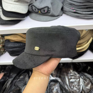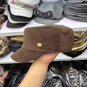韩系ins秋季麂皮绒平顶海军帽女英伦复古气质文艺百搭马术帽批发