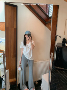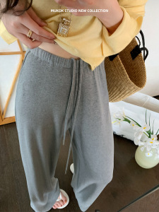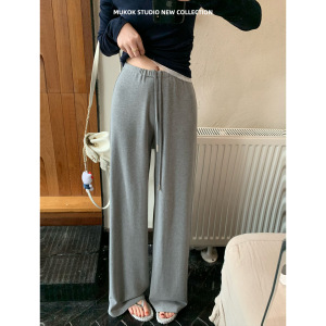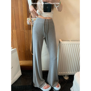 MUKOK 显瘦的神~ 高腰显瘦垂感长款女微喇拖地裤灰色休闲裤