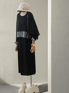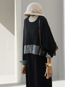 4U4U 假两件设计感连衣裙女秋季新款盐系牛仔拼接遮肉长袖连身裙