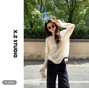 灰色冰丝长袖防晒T恤女秋季韩系慵懒松弛感巨好看的罩衫薄纱上衣