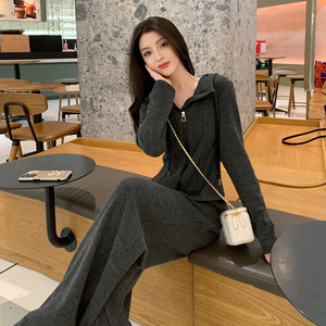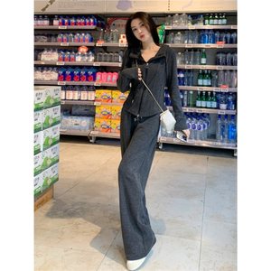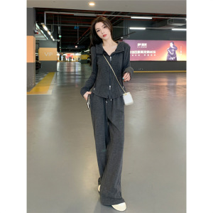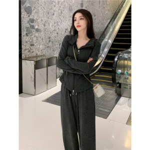 深灰色休闲运动套装女春秋2025新款时尚减龄超火卫衣阔腿裤两件套