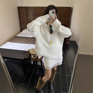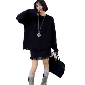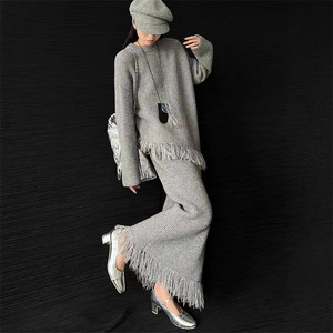 跨境外贸秋冬搭配一整套减龄高级感不规则流苏毛衣半身裙两件套女