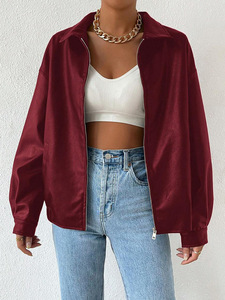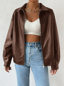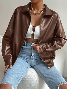 2025秋冬季欧美跨境辣妹PU皮衣复古机车长袖拉链翻领夹克外套上衣