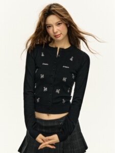 Ariseism刺绣小狗短款毛衣针织开衫女秋季新款修身内搭上衣打底衫