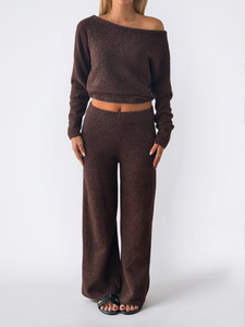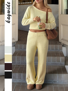 迪芸跨境欧美休闲运动长袖毛衣长裤套装女装2025秋冬亚马逊独立站