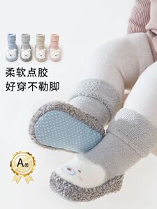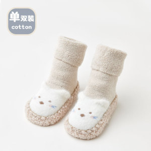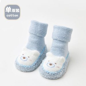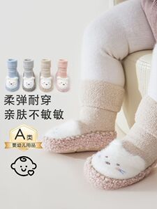 婴儿学步鞋25冬季保暖卡通小熊室内防滑宝宝地板鞋袜毛圈加厚软底
