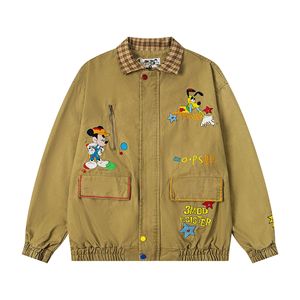 美式复古趣味卡通刺绣做旧翻领外套男女情侣宽松休闲百搭夹克