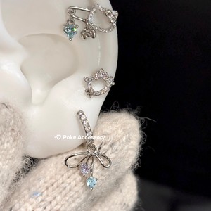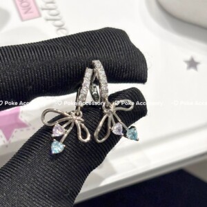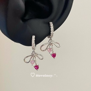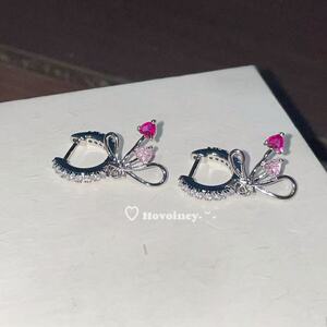 甜心贝莉 精致满钻蝴蝶结耳扣爱心锆石直针耳圈