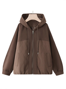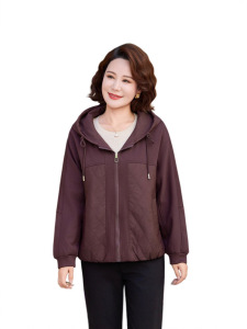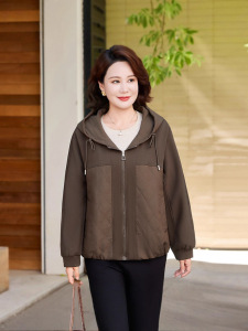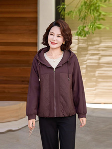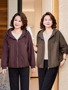 妈妈装秋季休闲纯色连帽上衣中老年女装宽松大码拉链卫衣百搭外套