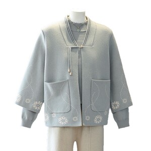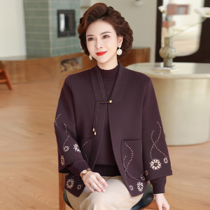 2025新款妈妈秋装针织两件套上衣洋气中老年女装春秋时尚开衫外套
