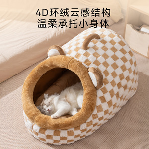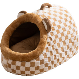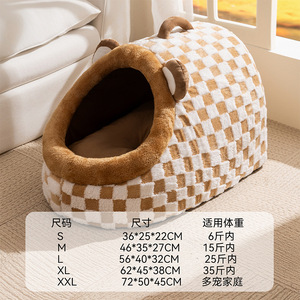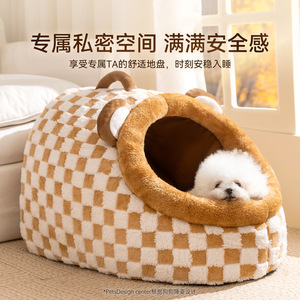 狗窝秋冬季萌趣半封闭保暖千鸟格手提窝狗狗猫咪猫窝狗窝宠物窝