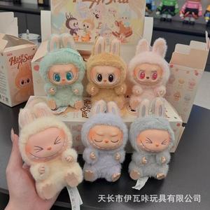 popmartlabubu二代拉布布坐坐派对搪胶脸毛绒盲盒玩具潮玩公仔