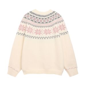 2025秋季美式休闲费尔岛提花圆领毛衣男女宽松慵懒风情侣针织衫