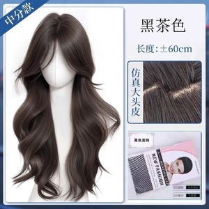 黑茶色中分大波浪+发网