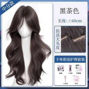 黑茶色中分大波浪+大弯梳五件套