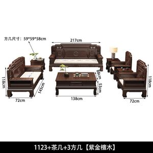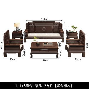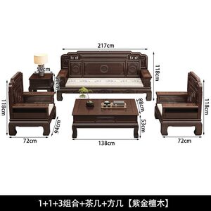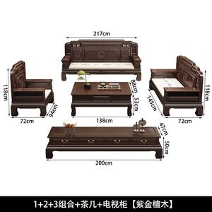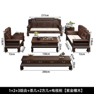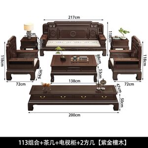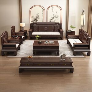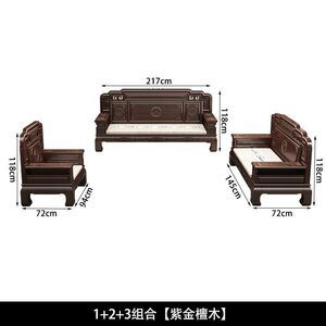 新中式紫金檀木全实木沙发组合仿古雕花客厅别墅冬夏两用古典家具