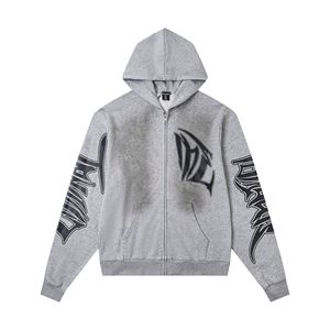 高品质MIXED EMOTION美潮街头嘻哈烫钻白墨直喷拉链帽衫男女卫衣